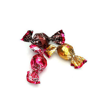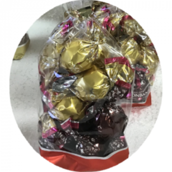 Assortiment de Papillotes de chocolat au lait praliné et chocolat au lait au coeur coulant caramel